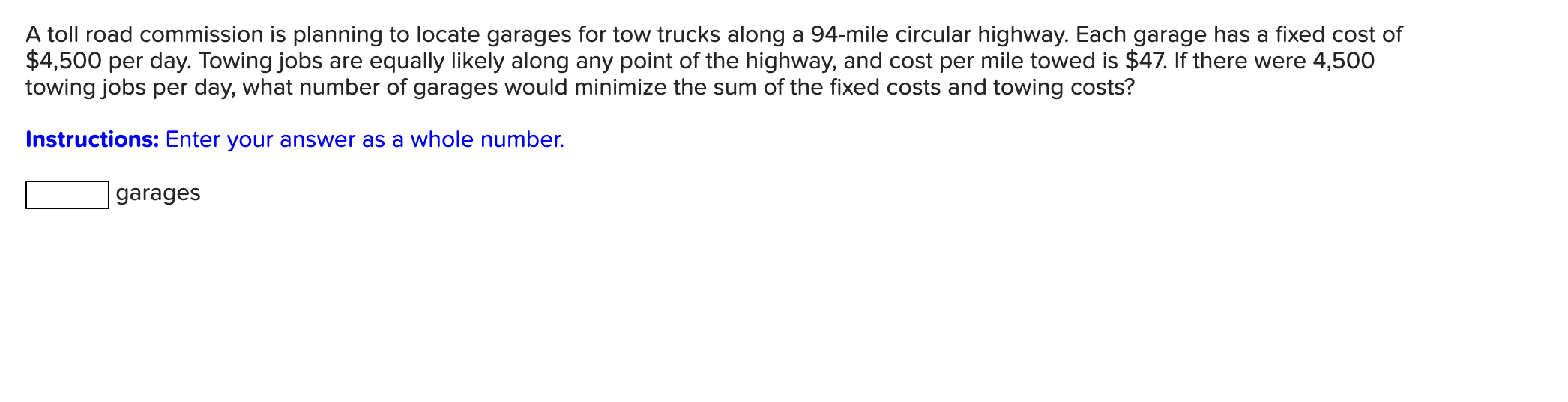 Solved A Toll Road Commission Is Planning To Locate Garages Chegg Com